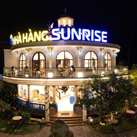Sunrise Restaurant, part of Sunny Beach Resort, is famous for its beautiful sea view, especially at sunset. The menu is rich, combining Asian and European cuisine, with fresh seafood dishes. The open and airy space, designed in Indochina style, creates a romantic and relaxing atmosphere for your dinner.